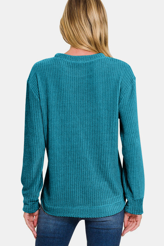 Zenana Ful Size Round Neck Long Sleeve Curved Hem Sweater