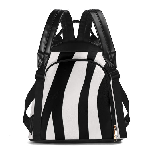 Casual Black and White Travel PU Daypack Anti-theft Backpack