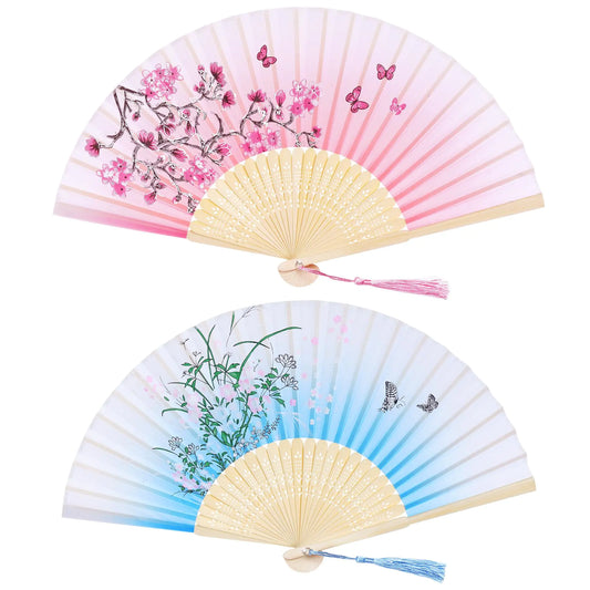 Bantoye 2 Pieces Handheld Fans Silk Folding Fans with Bamboo Frames for Dancing Cosplay Wedding Party Props Decoration (Pink Blue Floral)