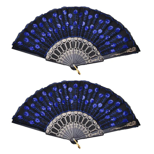 Winture Peacock Hand Fans Spanish Folding Hand Fan Flower Dancing FansSummer Handheld Folding Fans Party Favors for Girls Women (Royal Blue 2 PCS)