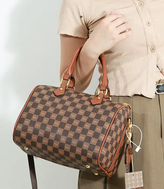 Plaid Shoulder and Handbag Set