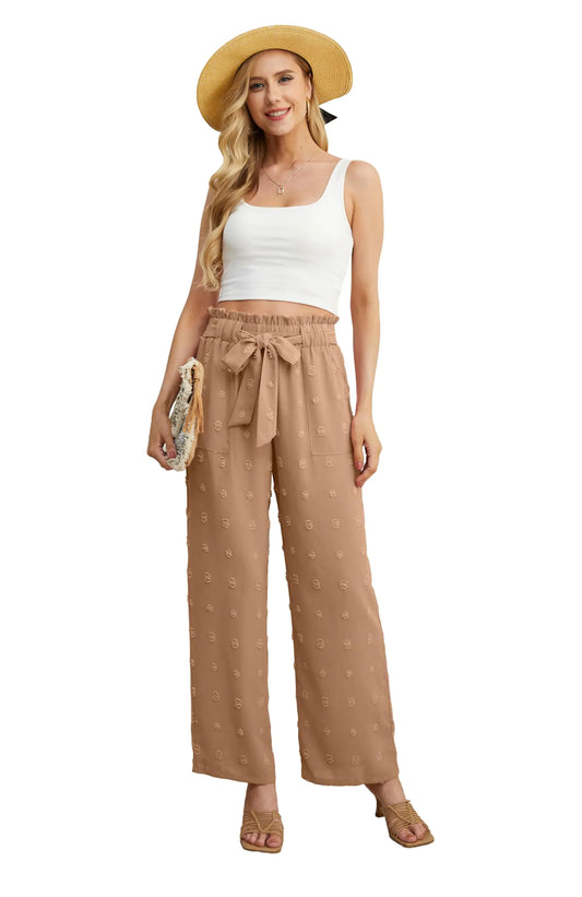 OLRIK Women's Casual Plus Size Pants High Waisted Self-tie Belted Lounge Pants Straight Long Trousers with Pockets 3X Th Khaki