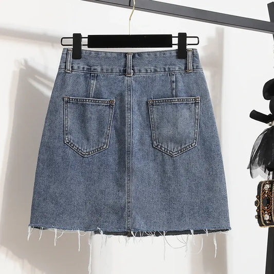 Summer New High Elastic Raw Edge Denim Skirt for Women
