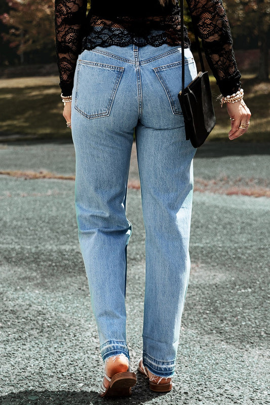 Distressed Straight Jeans with Pockets