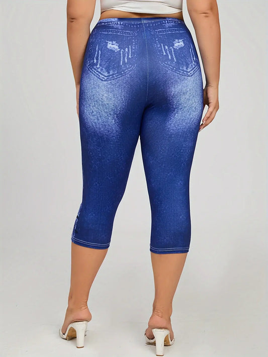 Plus size Four Seasons New Fashionable and Elegant Digital Printing 3D Imitation Denim Women's Middle Pants