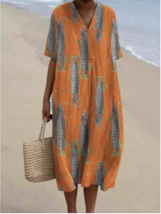 Summer Puff Sleeve Boho Maxi Dress Women Elegant 2024 Casual Floral Drawstring V-Neck Loose Holiday Beach Dresses Party Vestidos