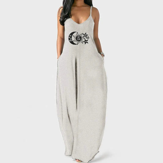 Sexy Deep V-neck Sleeveless Beach Casual Dress with High Waist Pockets