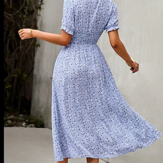 Plus Size Printed V-Neck Flutter Sleeve Midi Dress