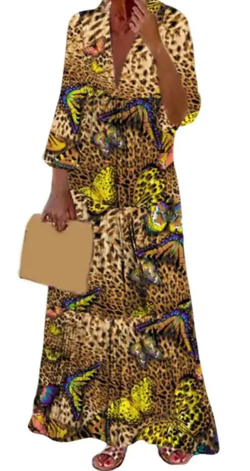 Plus Size Elegant Gold Embroidered Kaftan Retro V-neck Dress