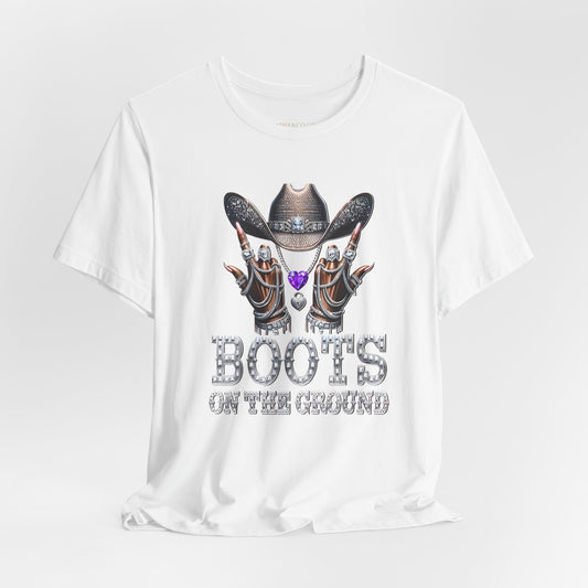 Purple Gem Cowboy Tee | "Boots on the Ground" Design | Perfect Gift for Country Music Lovers, Western Fashion, Casual Wear