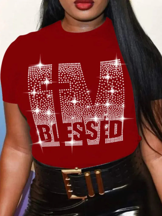 Plus Size T-Shirts with Rhinestone for women