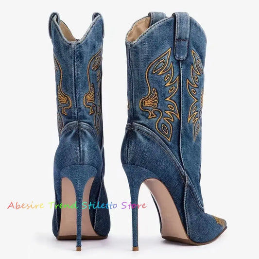 Stride in Style: New Fashion Embroidered Denim Ankle Boots for Women