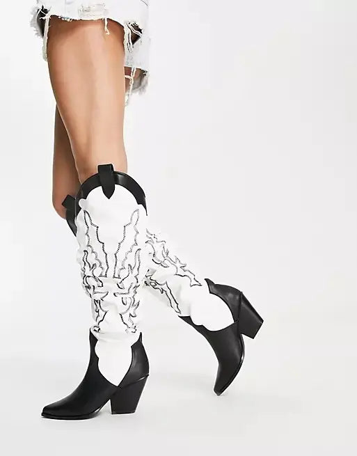 Western Cowgirl Over The Knee High Boots with Chunky Block Heels Shoes