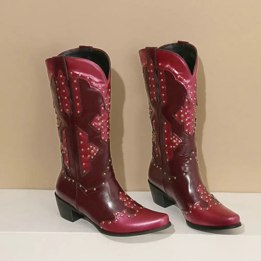 Vintage Rivet Embroidered Western Cowboy Women's Boots
