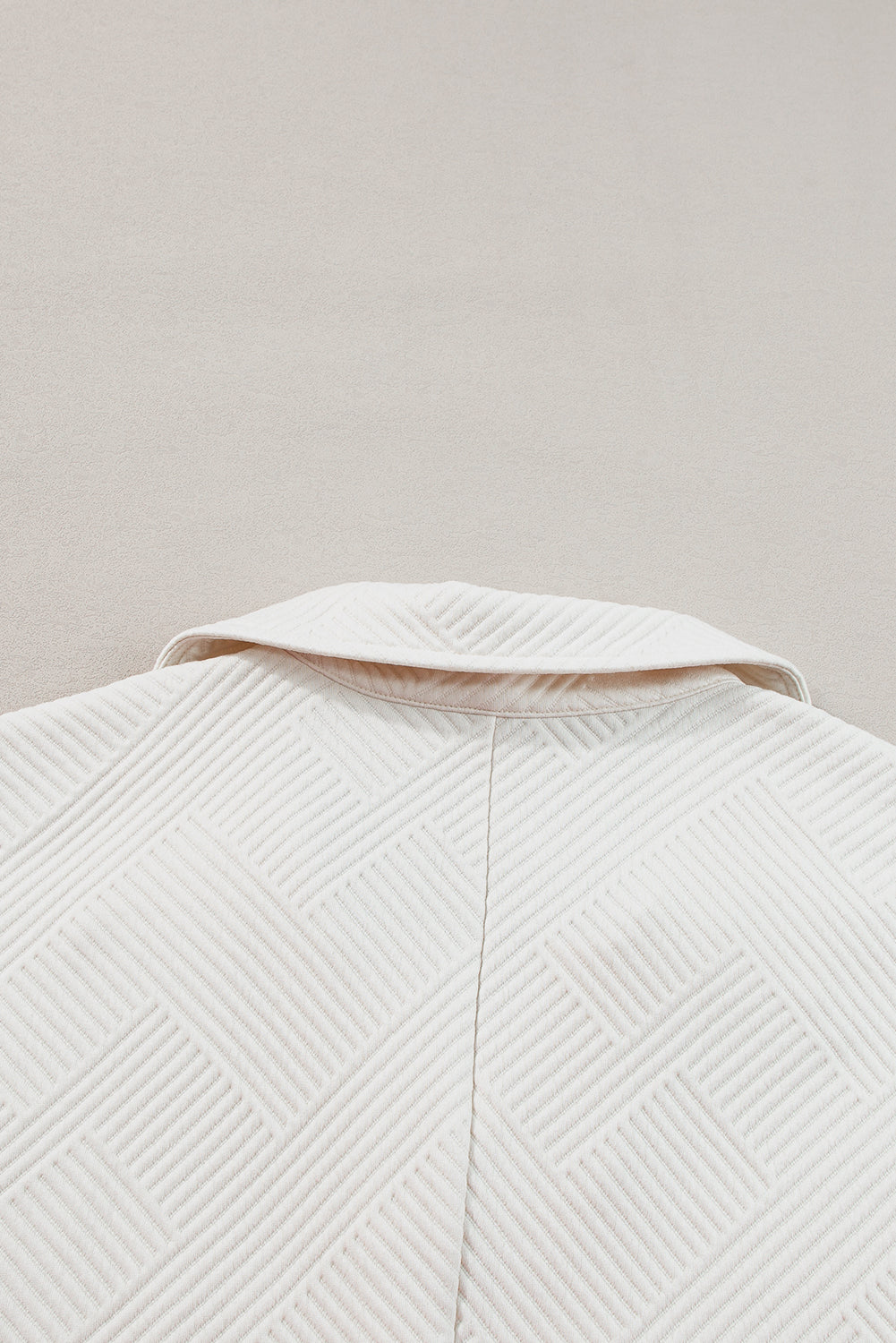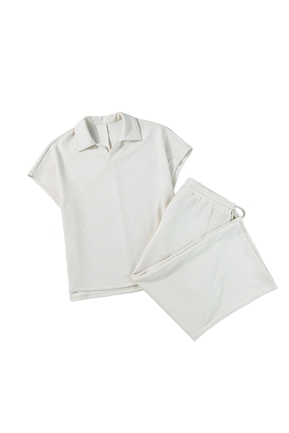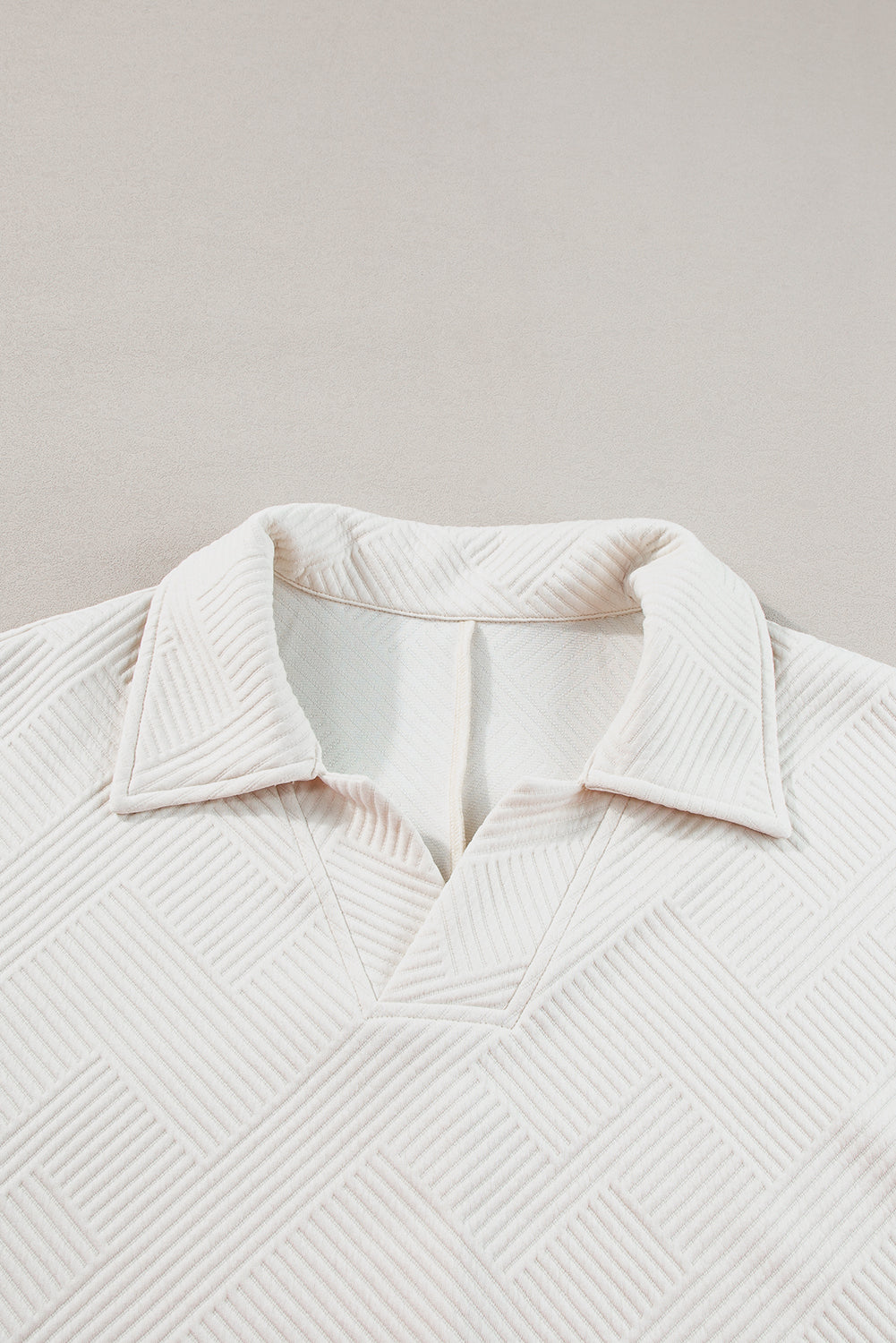 Beige Plus Size Textured Collared Top and Drawstring Pants Set