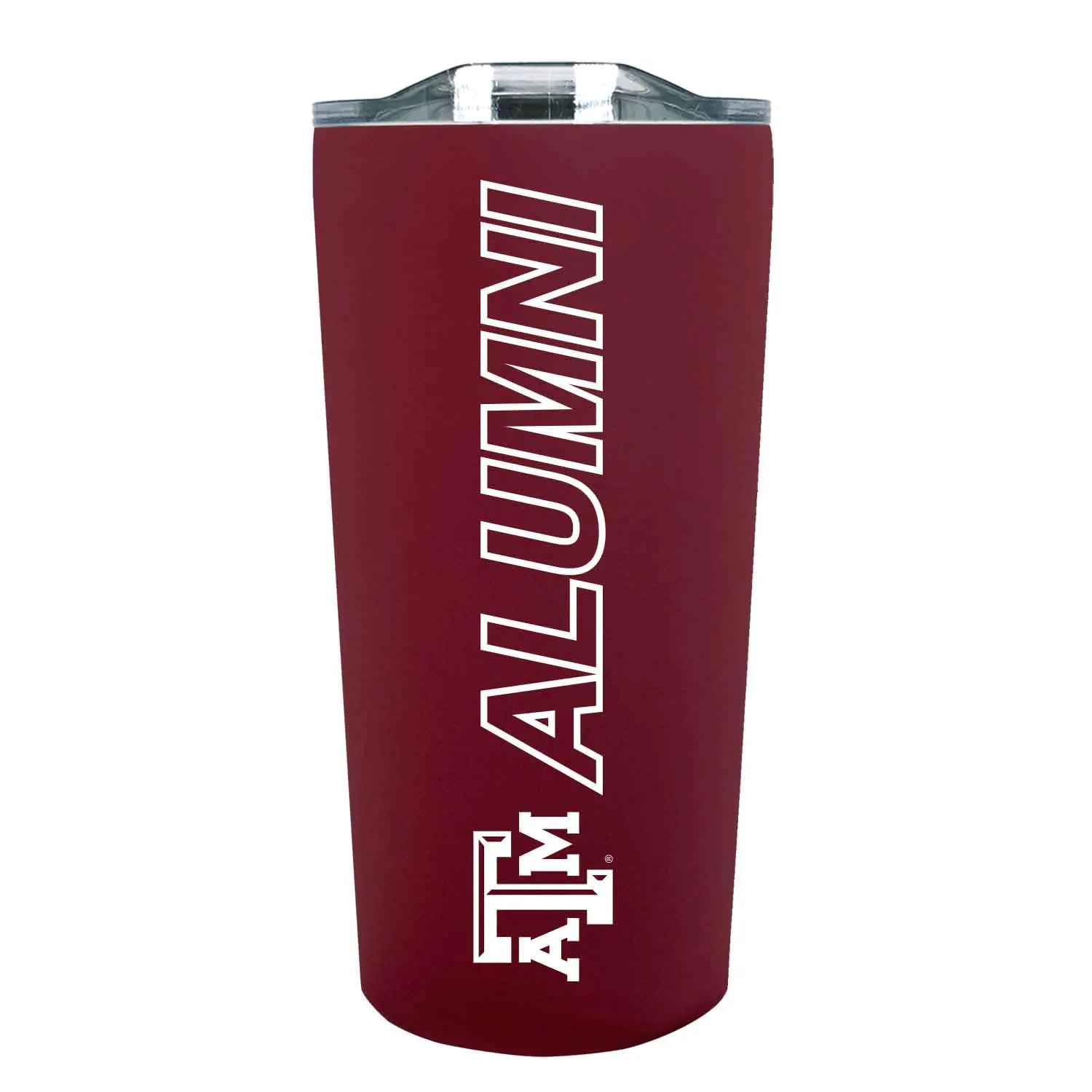 Our stainless steel tumbler mugs for alumni are designed for constant use in any type of setting! At a sports game? These insulated tumblers are compact and can fit in most cup holders. On the move? Our contoured spout makes it easy to sip on the go! Your tumbler is there to compliment your Texas A&M sweatshirt when you need to stay warm and there when youre looking for an ice-cold refreshment. No matter the setting show your school and alumni pride while properly and efficiently preserving the desired temperature of your beverage! This Texas A&M Aggies ALUMNI travel mug also makes a great gift if youre looking to give any Aggies fan in your life a present! All of our products feature the official team colors logos and lettering. We dont skimp on quality in any way. The colors are always vibrant and the graphics are always accurate and brimming with team spirit. Let everyone know youre a cool Texas A&M alumni and get this alumni tumbler today!