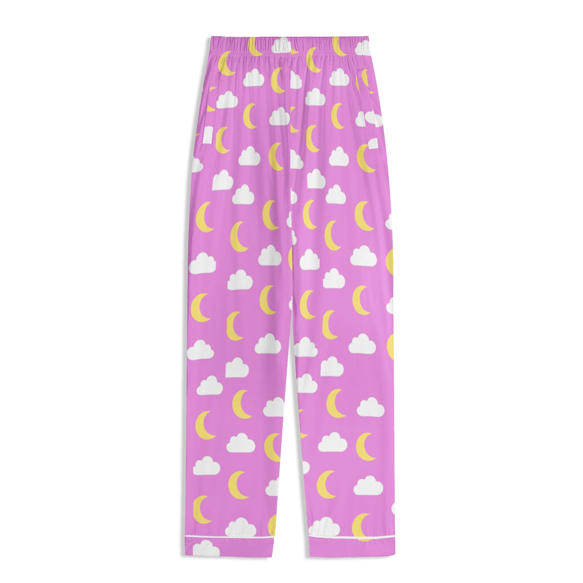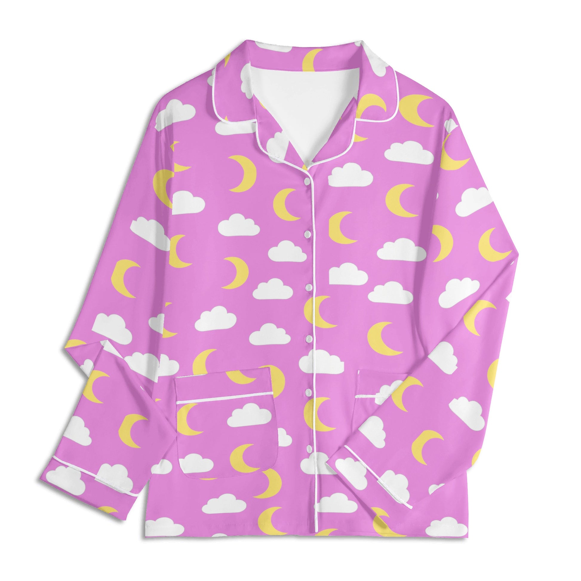Float into comfort with our Moonlit Clouds Cozy Pajamas, featuring an exclusive seamless pattern of soft white clouds and pastel yellow crescent moons. Available in both pink and aqua, these pajamas bring the perfect blend of cute, cozy, and calming nighttime vibes.