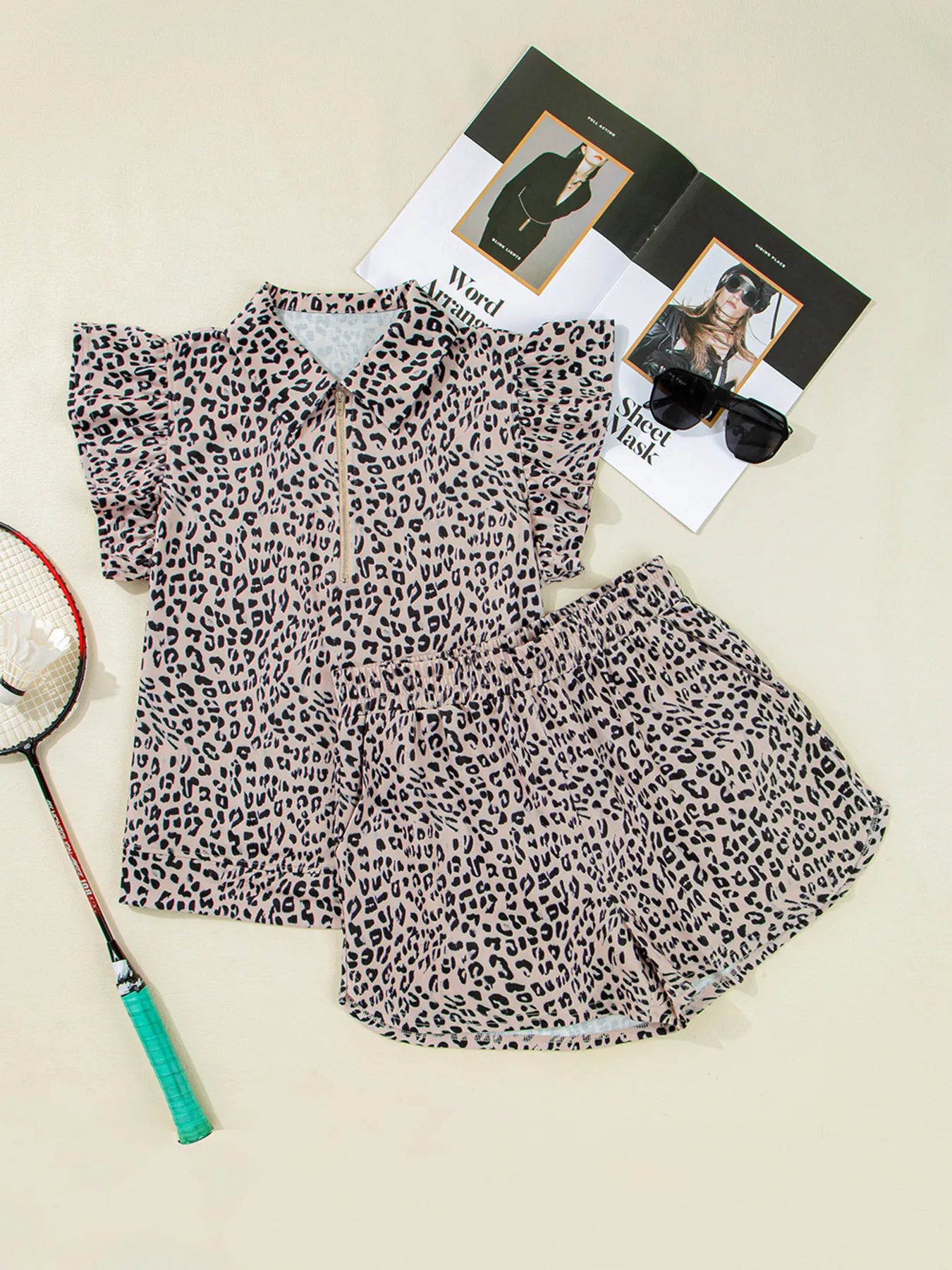 Leopard Print Cap Sleeve Top and Shorts Summer Set