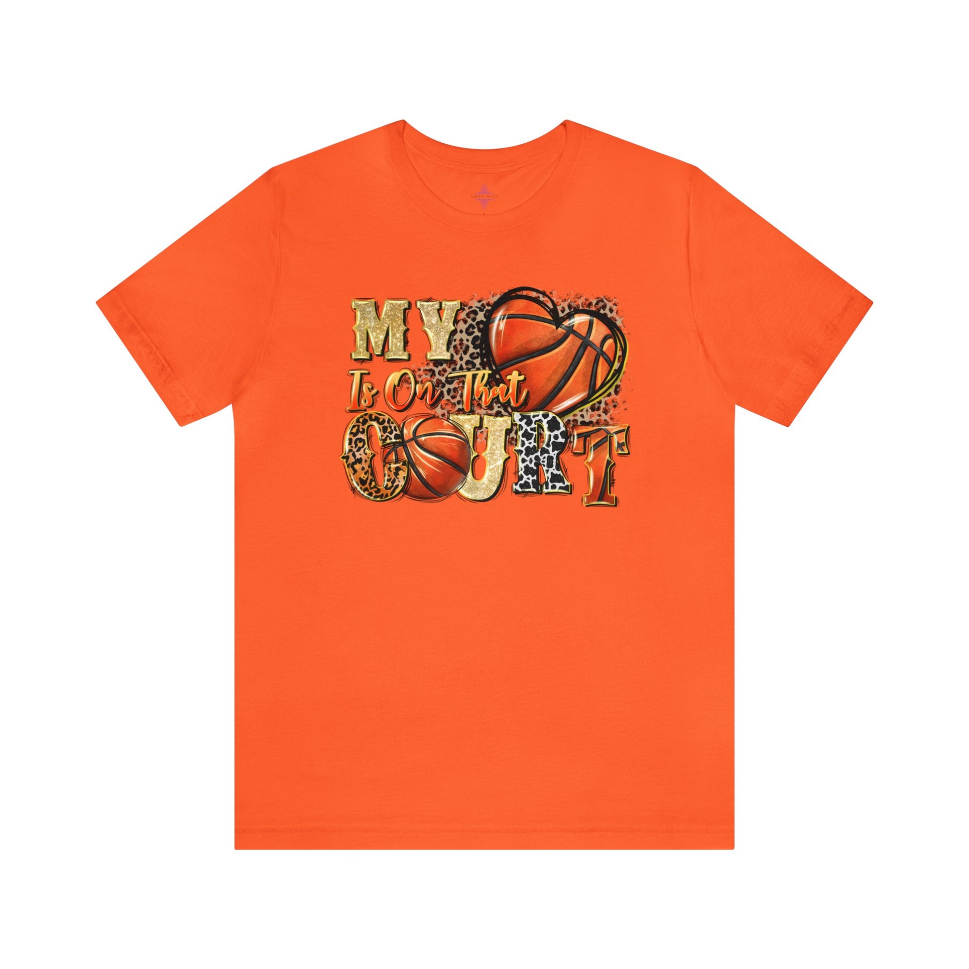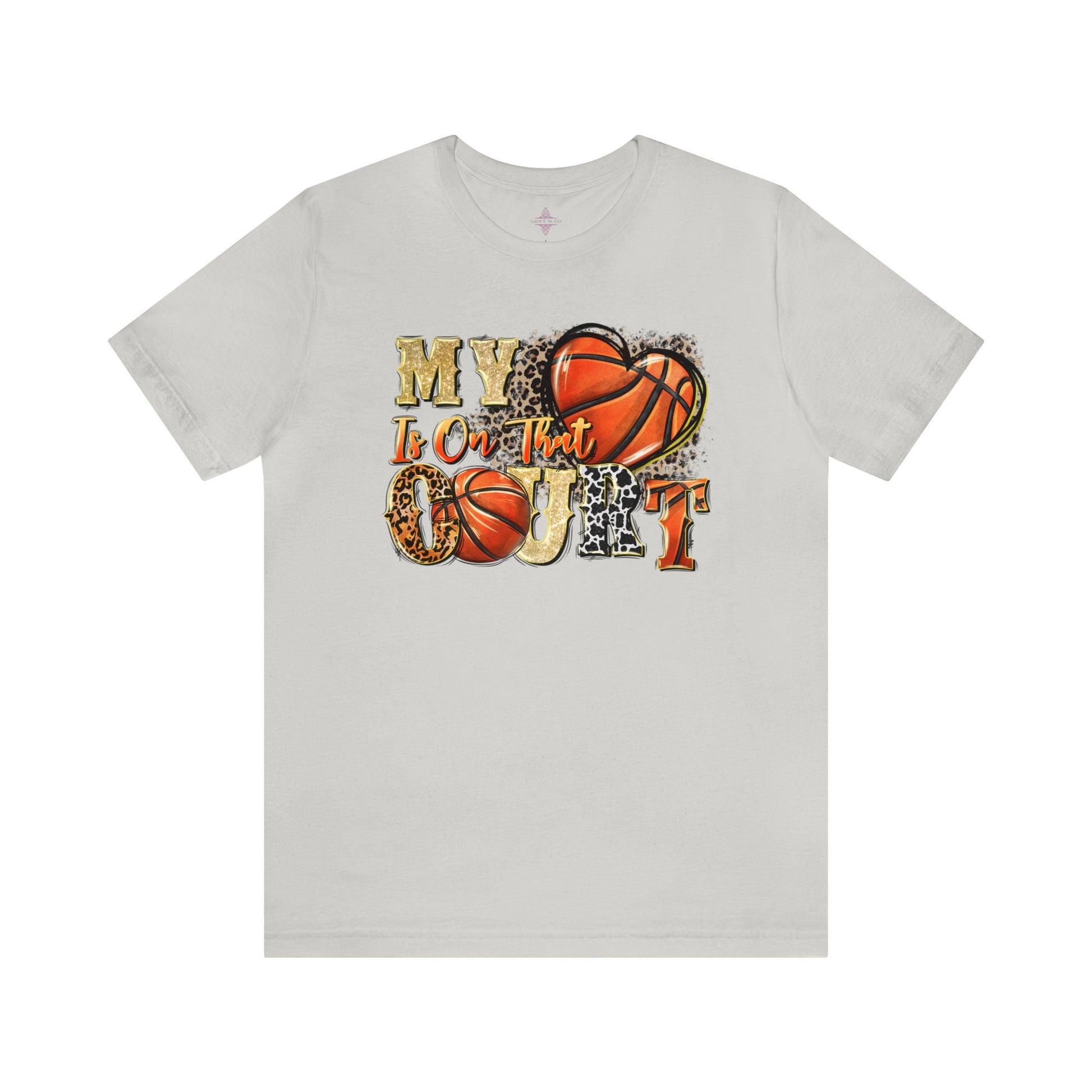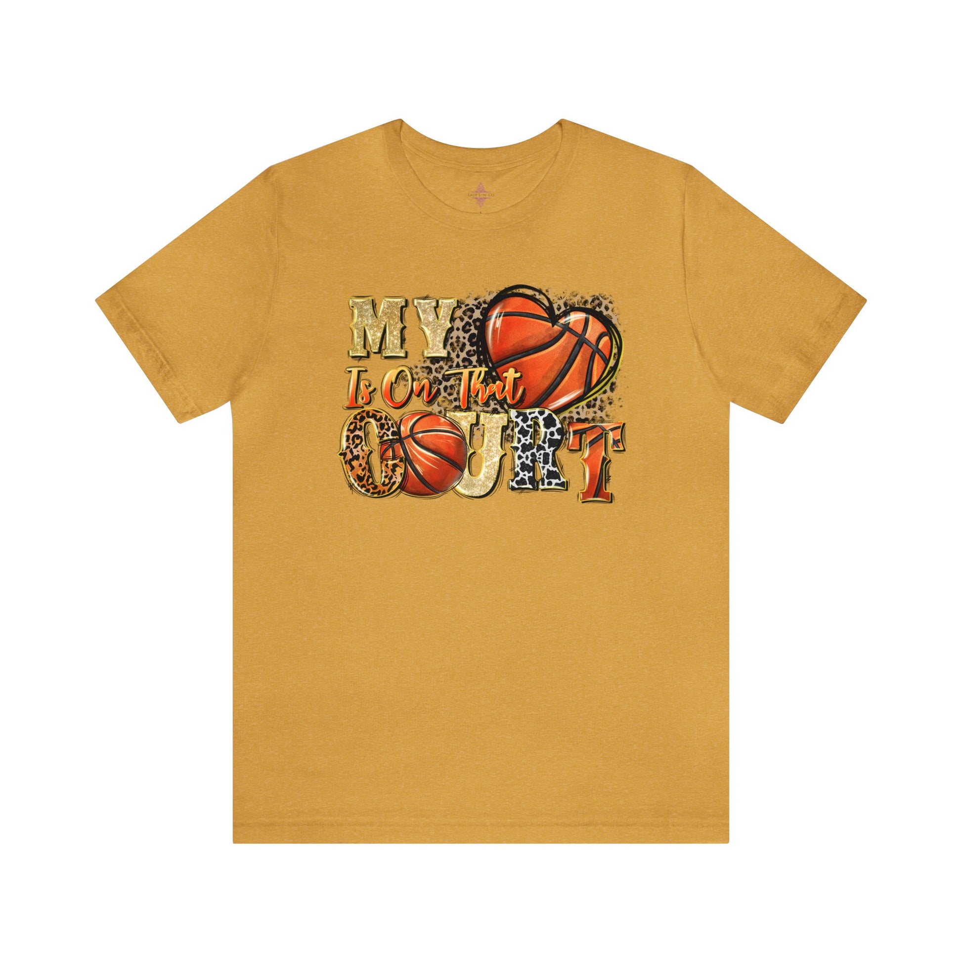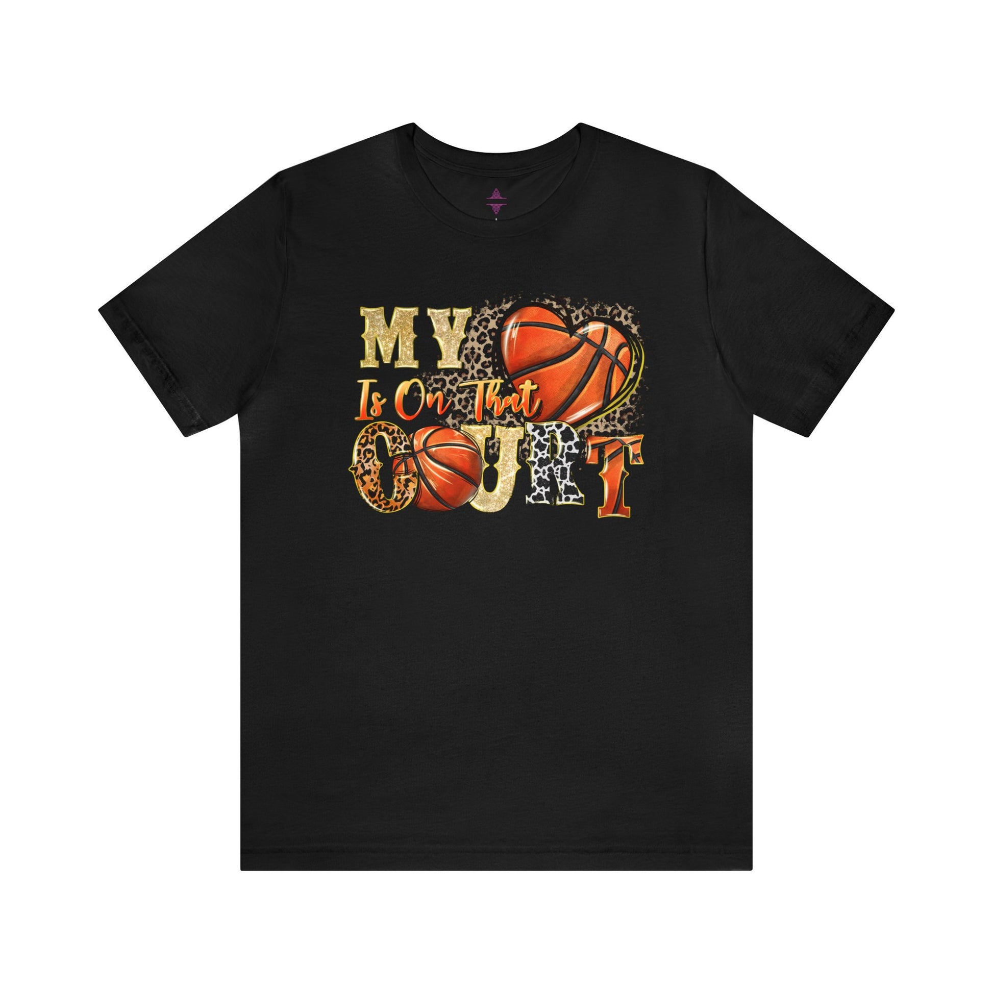 The bold typography, emblazoned with the words "My heart is on that court," adds a touch of flair to your outfit, making it clear where your true devotion lies. The design is dynamic and energetic, mirroring the intensity of your commitment to the court.
