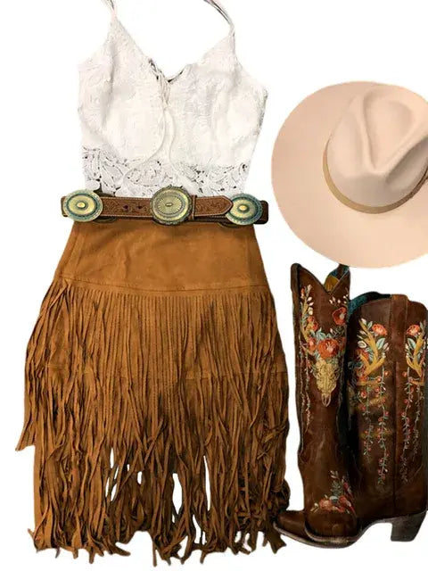 Make a statement in sophistication with our Solid Color Tassel Design Khaki Skirt. This elegant piece features a high waist design and a chic short length split, offering a perfect balance of style and comfort. The tassel detailing adds a touch of flair, elevating your look with effortless charm. Whether you're dressing for a day at the office or a night out on the town, this skirt is sure to turn heads. Pair it with a blouse for a polished ensemble or dress it down with a casual top for a relaxed yet refined look. Embrace timeless elegance with our Solid Color Tassel Design Khaki Skirt and step out in style.