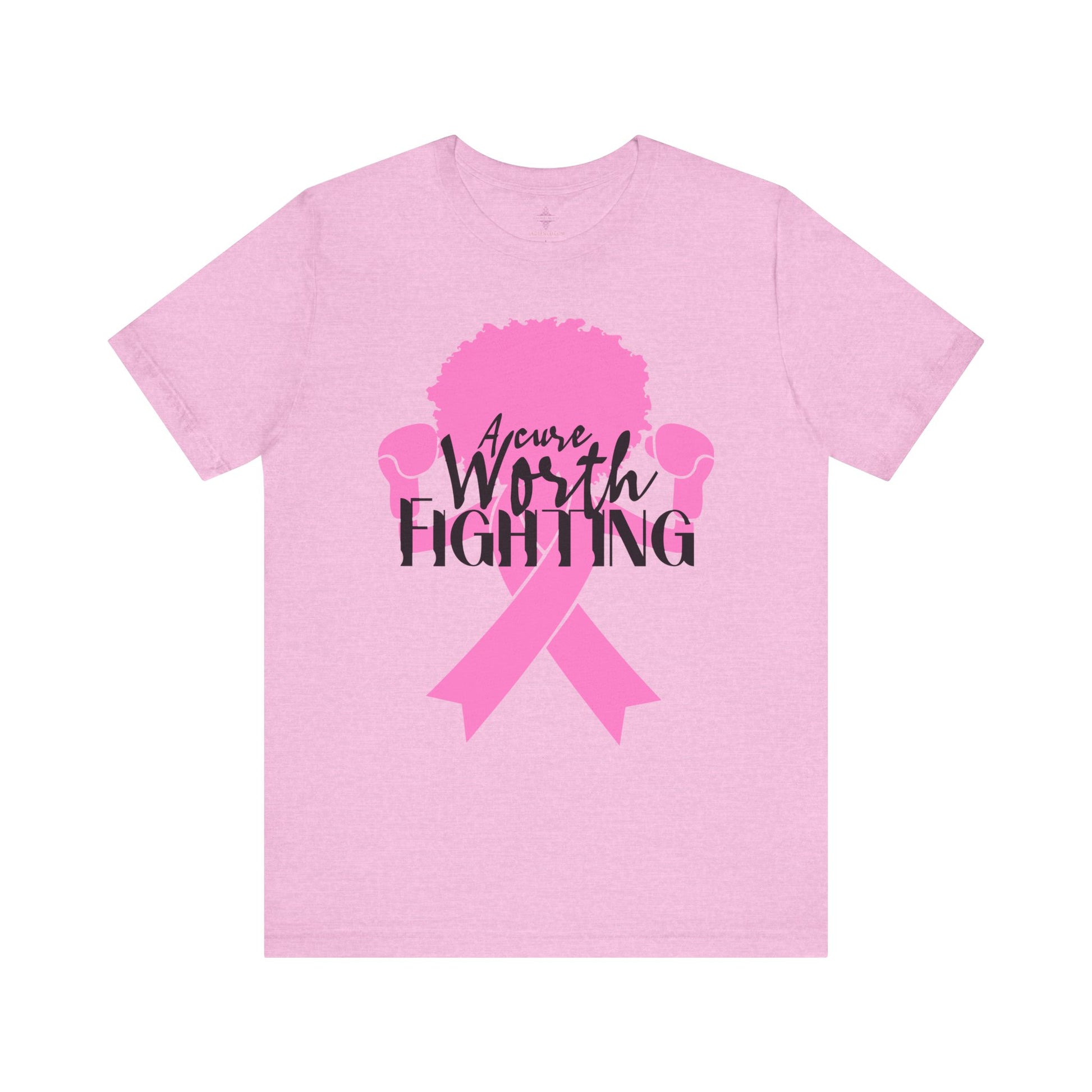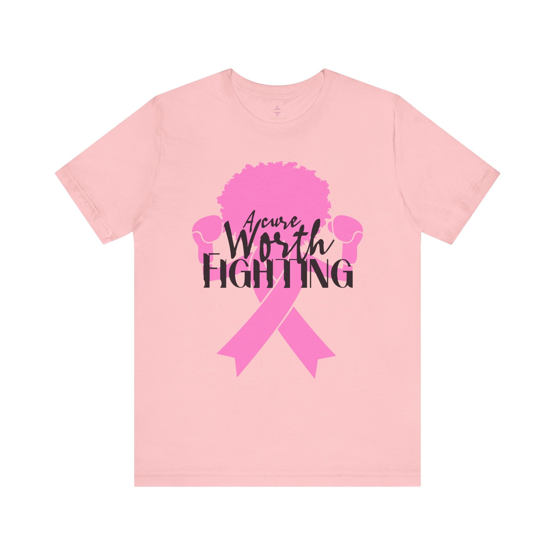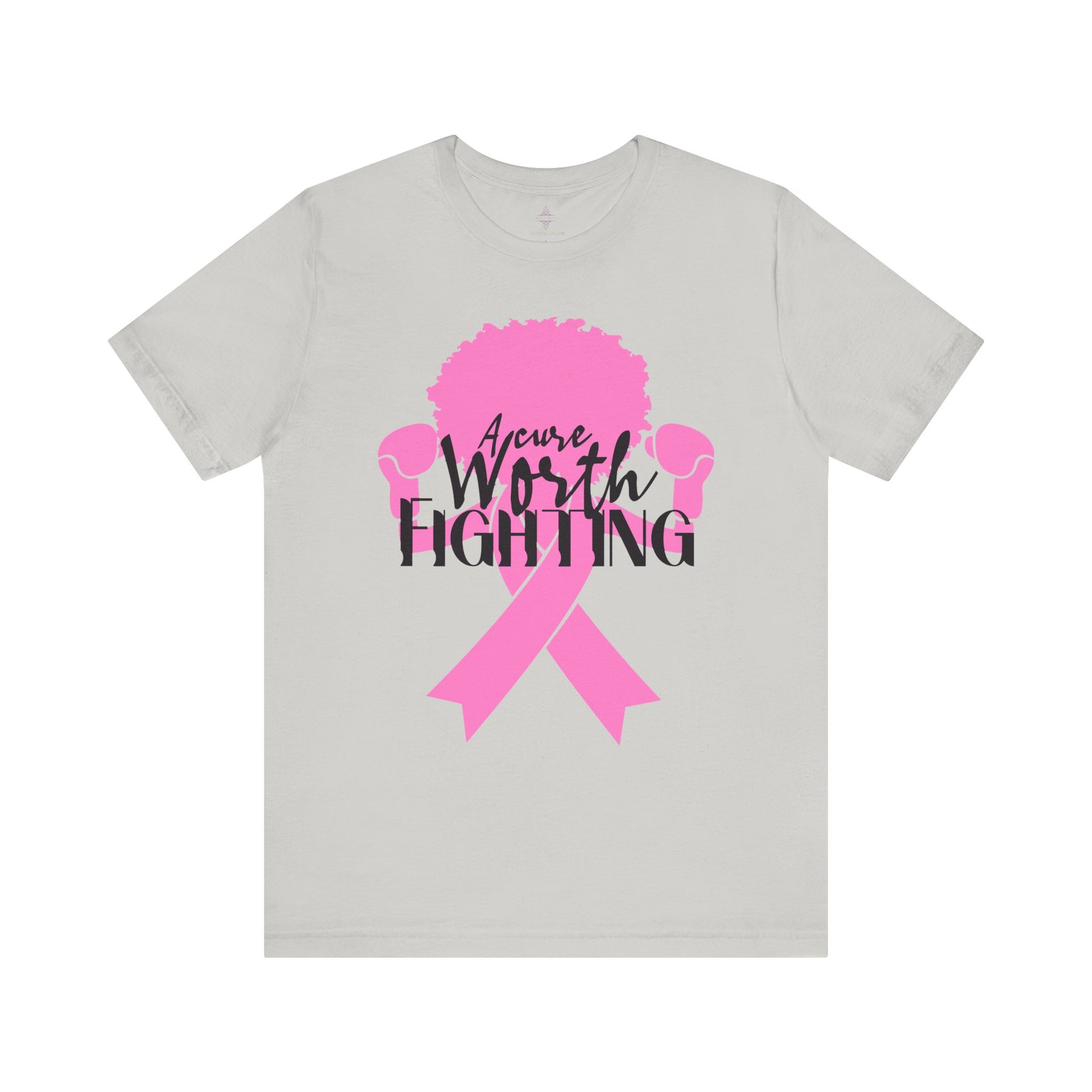Step into the world of empowerment and advocacy with our striking Breast Awareness T-Shirt, boldly proclaiming "A Cure Worth Fighting For". Designed to spark conversations and raise awareness, this tee is more than just apparel – it's a statement of solidarity and hope.