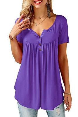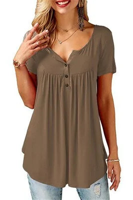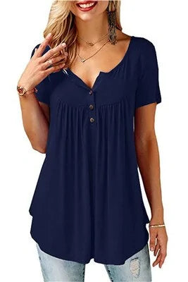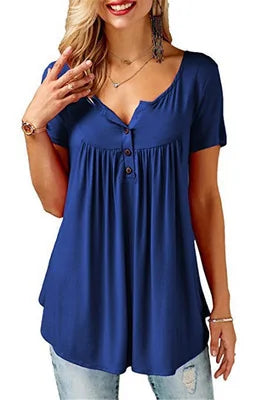 Designed with a casual yet professional flair, this top is ideal for both work and leisure. The V-neckline adds a sophisticated touch, while the button detailing enhances the overall design, making it perfect for everything from office meetings to weekend brunches with friends. Whether you're aiming for a laid-back look or a more polished appearance, this top effortlessly meets your fashion needs.